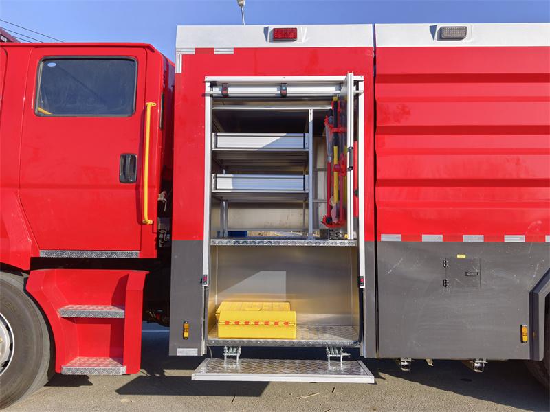 • Phòng trang thiết bị: Nằm ở phía trước cấu trúc thượng tầng của xe, phòng này được trang bị giá để thiết bị và kệ treo kéo ra. Các giá được thiết kế hợp lý để cất giữ gọn gàng các thiết bị chữa cháy khác nhau (quần áo chống cháy, chăn chống cháy, vỏ bọc vòi chữa cháy, cầu cứu hỏa, bình chữa cháy, v.v.); các kệ treo kéo ra giúp dễ dàng và nhanh chóng tiếp cận các thiết bị thường dùng như rìu chữa cháy, cuốc, xẻng, cờ lê, búa và xà beng, nâng cao hiệu quả cứu hộ.