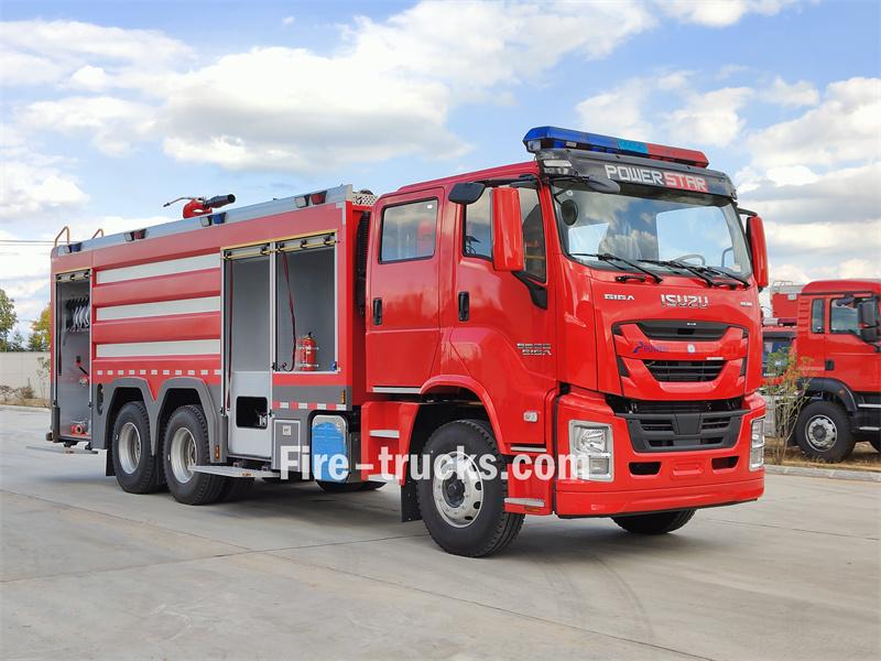 Xe cứu hỏa bọt Isuzu GIGA 6X4 dung tích 10 mét khối được chế tạo dựa trên khung gầm Isuzu GIGA 6X4, với chiều dài cơ sở 4600mm + 1370mm. Xe được trang bị động cơ Isuzu 6UZ1-TCG61 và hộp số tự động 12 cấp. Phần trước của thân xe là khoang thiết bị, phần giữa chứa bồn chứa nước bằng thép carbon 8500L và bồn chứa bọt bằng thép không gỉ 1500L, phần sau là phòng bơm, được trang bị bơm chữa cháy CB10/60-XZ, bảng điều khiển, vòi chữa cháy, thiết bị chữa cháy, v.v. Một vòi phun chữa cháy PL8/48 được đặt trên nóc xe.