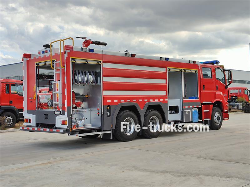 Water≥70 m,Foam≥60mCái Xe cứu hỏa và cứu hộ hạng nặng Isuzu GIGA của Senegal Dựa trên khung gầm Isuzu GIGA 6x4, xe này sở hữu công suất mạnh mẽ và khả năng vượt địa hình vượt trội. Cấu trúc thượng tầng được thiết kế khoa học với khoang chứa thiết bị phía trước được phân loại để lưu trữ thiết bị chữa cháy, bồn chứa nước trung tâm 8500L + bồn chứa bọt 1500L đáp ứng nhu cầu chữa cháy kéo dài, và phòng bơm phía sau tích hợp bơm chữa cháy CB10/60 và bảng điều khiển thông minh.